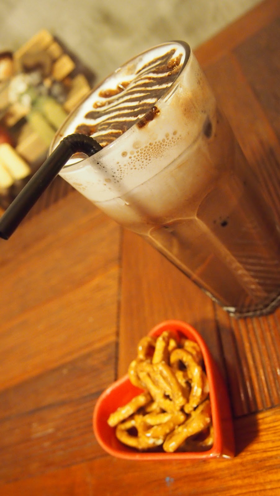 因為本身不愛咖啡,所以再睏都沒有點,最後點了冰巧克力,