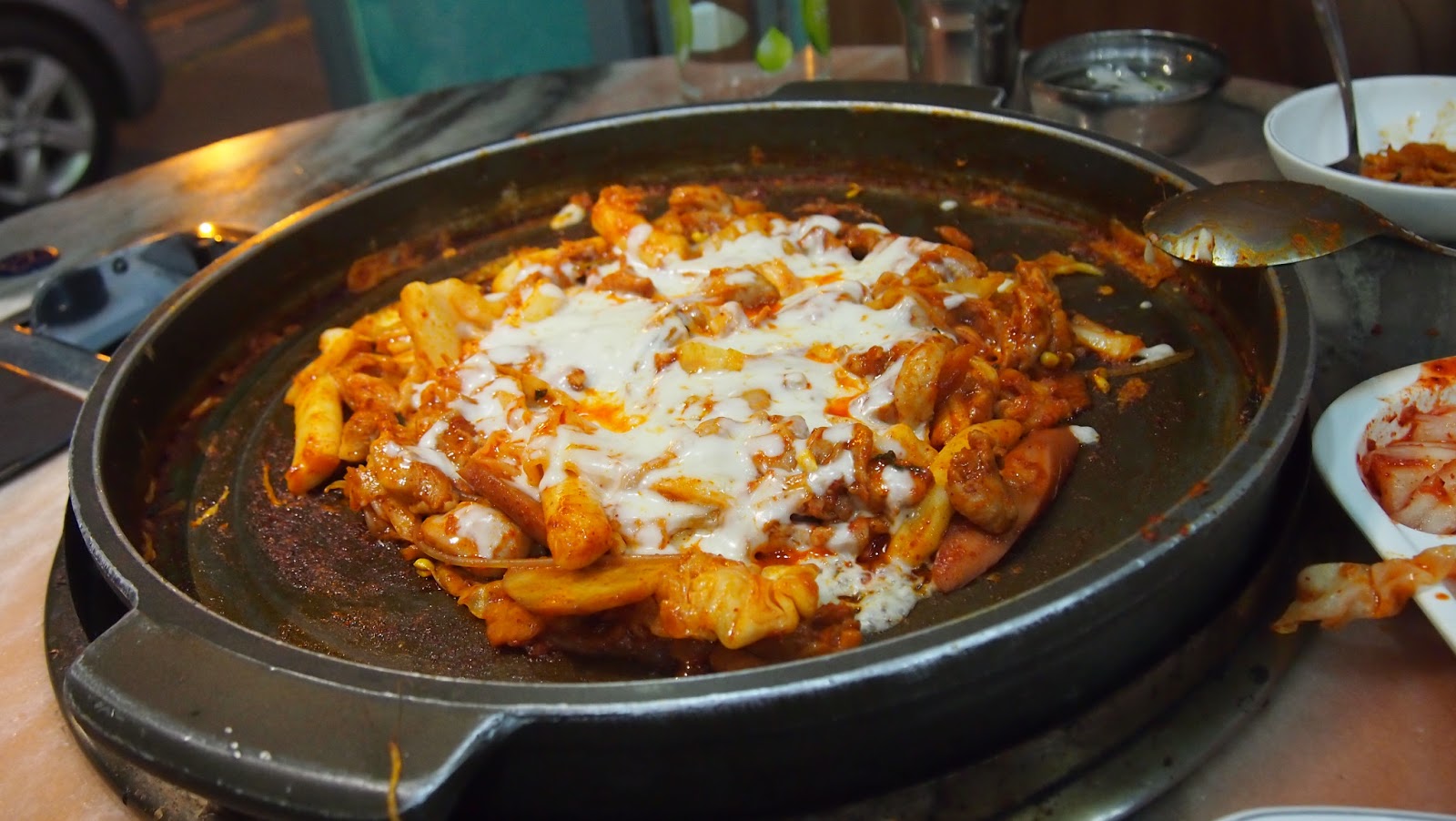 本來要吃朋友推薦的年糕鍋,可是十點就已經關門了,所以就去了春川辣炒雞排,