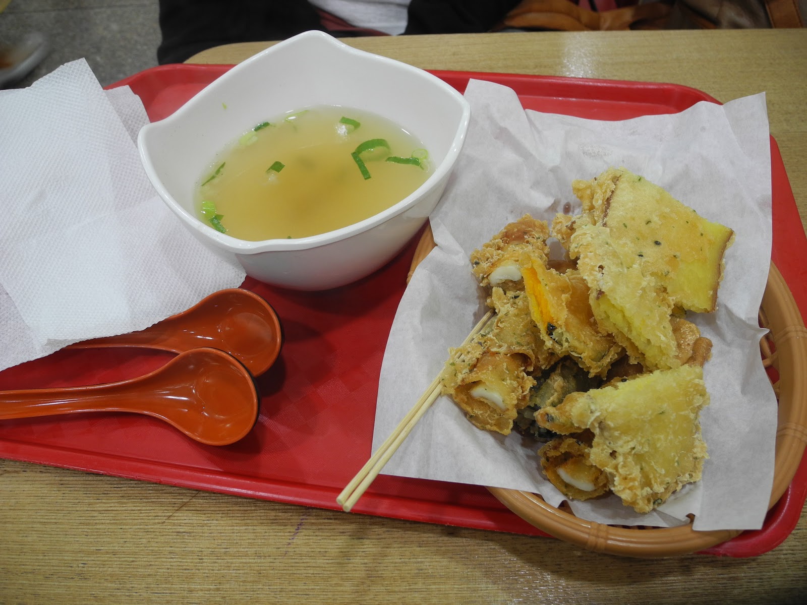 它有賣炒年糕、天婦羅、魚糕、米腸等,因為怕太飽,所以就選了小份的天婦羅。
